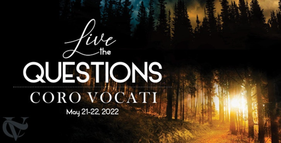 Coro Vocati's spring 2022 concert program, Live the Questions, explores the pandemic's impact on society -- how we view time, how we love, how we heal, and how we live. Our "new normal" seems to have more questions than answers. Priorities are changing. Relationships are evolving. Lessons are being learned. But how do we avoid falling into old habits?