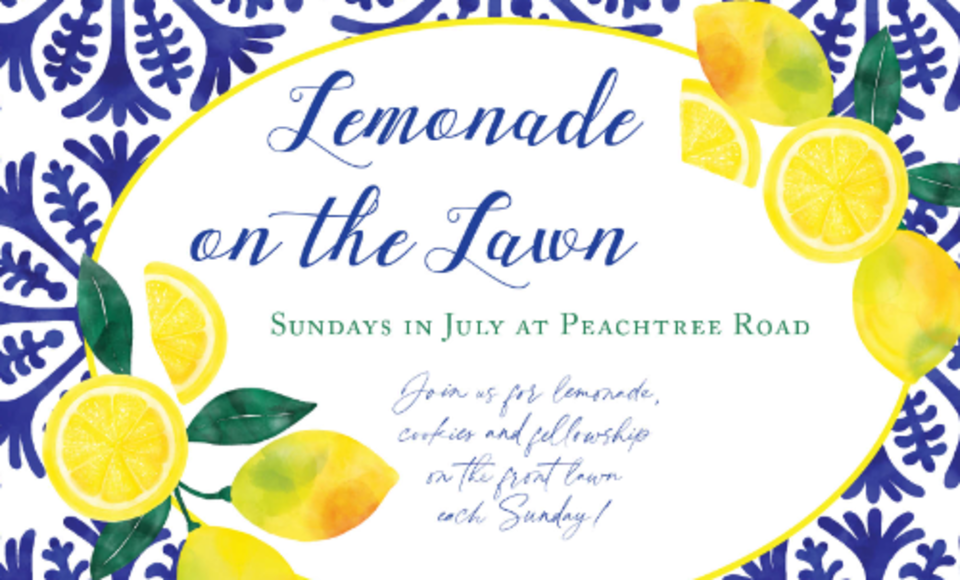 Everyone is invited to the front lawn after worship for lemonade, cookies, and catching up with church friends.