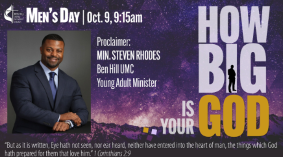 According to the church’s post, Steven Rhodes, the young adult minister of Ben Hill United Methodist Church, presented the theme"How big is your God?" with a scripture reference 1Cor 2:9.