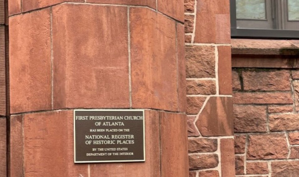 The First Presbyterian Church in Atlanta, Georgia, has installed its national register plaque to tribute the church's unique historical architecture.
