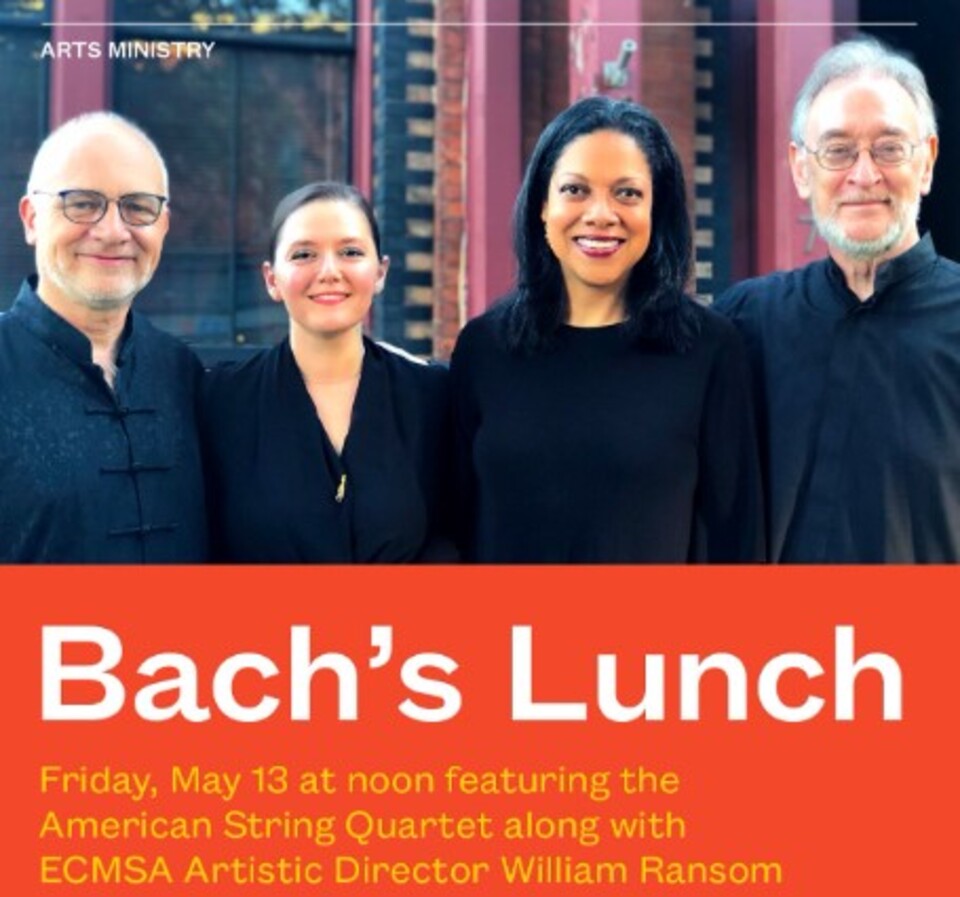 In a Facebook post on Thursday, April 28, the First Presbyterian Church invited the public to join for another Bach’s Lunch featuring the American String Quartet along with ECMSA Artistic Director William Ransom.