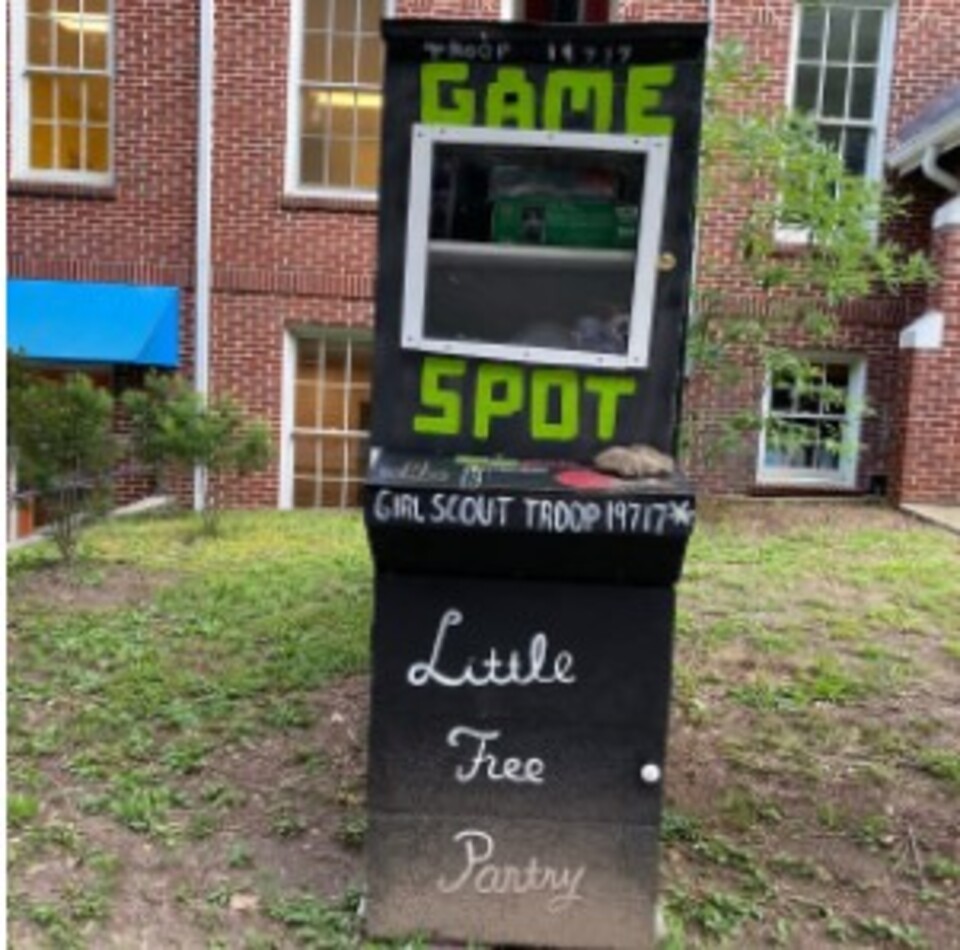 The church said the Girl Scout Troop built the pantry and game spot to share resources around the neighborhood.