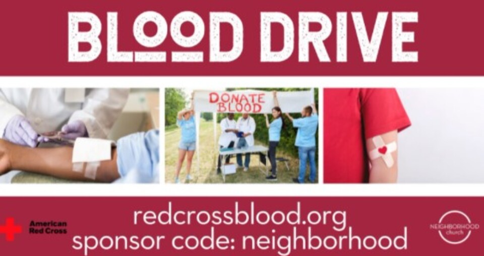 Those who are eligible and feel comfortable donating blood can sign up for the church's next blood drive on February 16 from 2 p.m. to 7 p.m. in the Neighborhood Church Sanctuary.