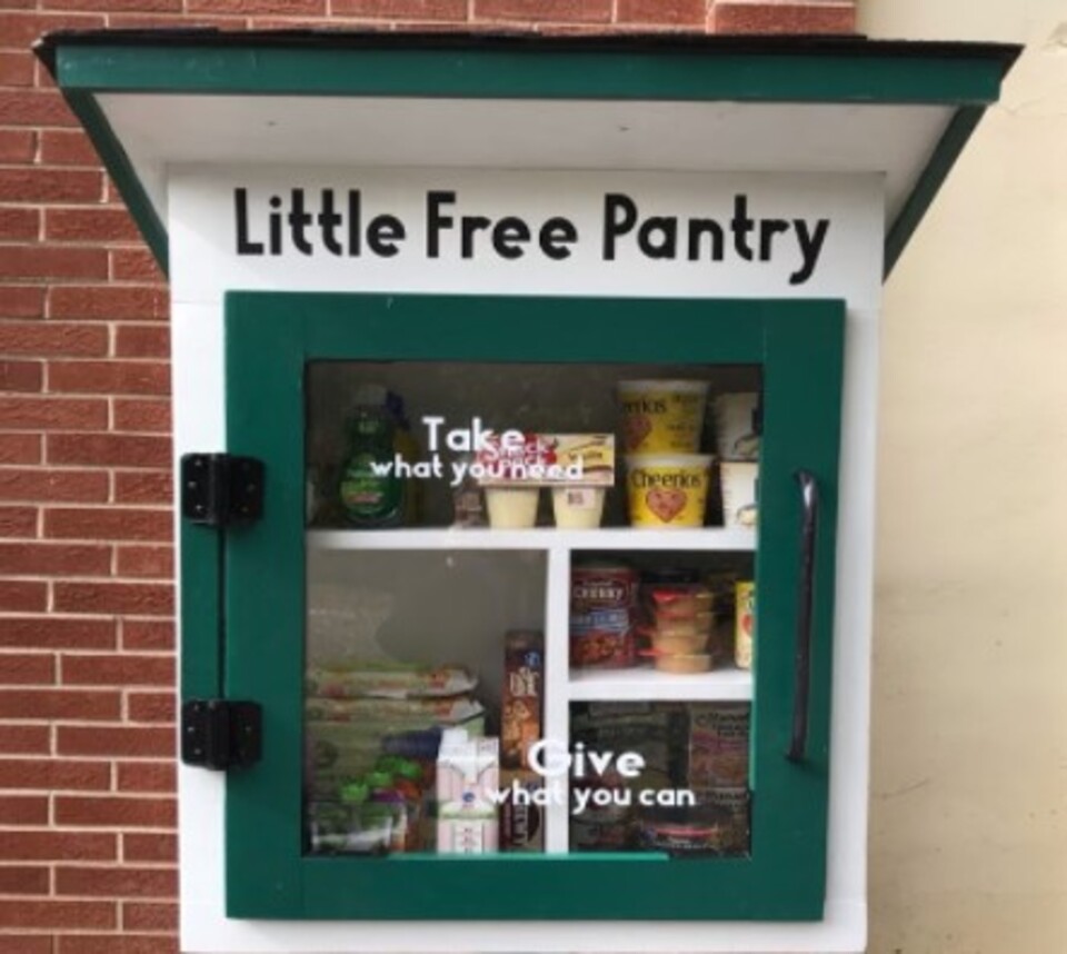 According to the church, the Little Free Pantry was based on the “Little Free Library” model except that the box is stocked with food and hygiene items instead of books.