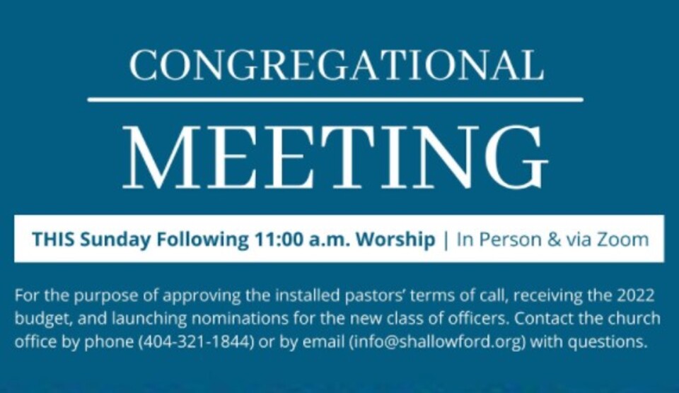 The Shallowford Presbyterian Church in Atlanta, Georgia, invited the public to join for a congregational meeting this Sunday.