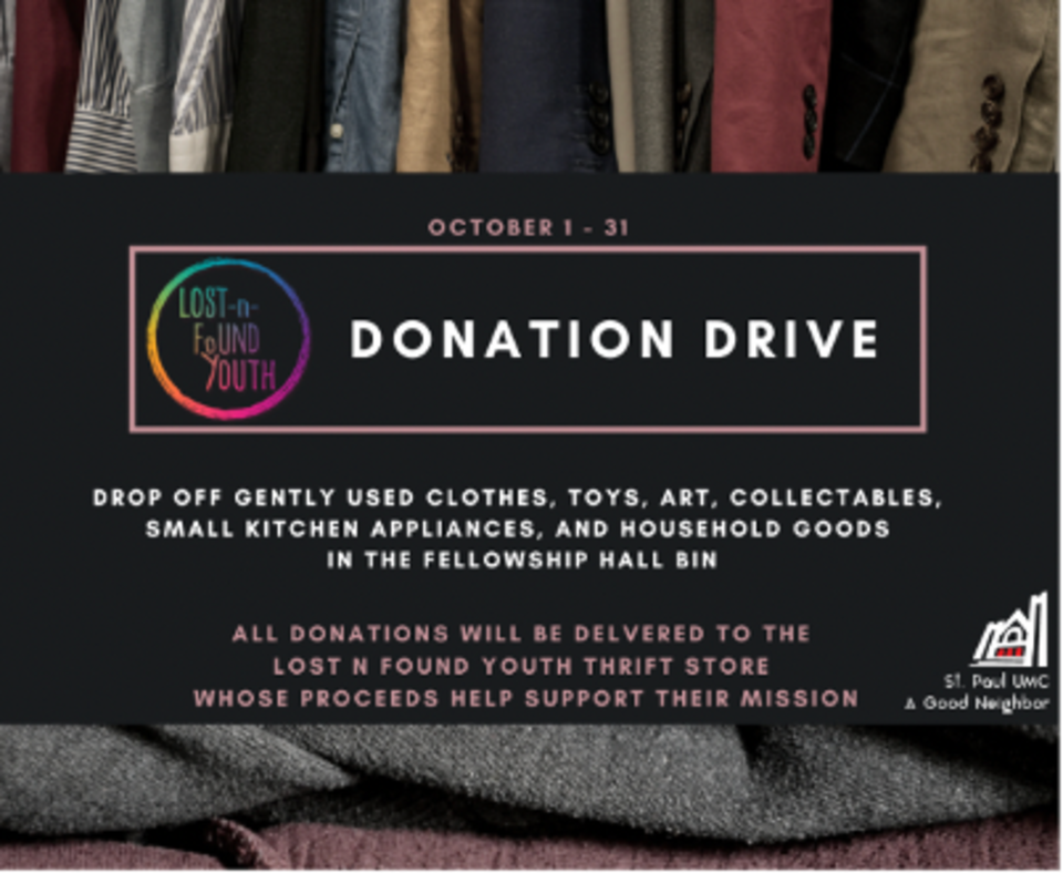 St. Paul United Methodist Church in Atlanta, Georgia called for a donation drive called “Lost-n-Found Youth Thrift Store.”