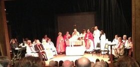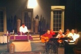 We hope you will come and worship with us in our unique location, where we are reminded that we are called to be the church in the midst of the changes and drama of life. As we set up our altar each week, we recall that Christ has come into our midst, spreading his banquet feast, and inviting all to come to the table he has set before us. Our world view grows every few weeks with the changing theater set that frames our altar!