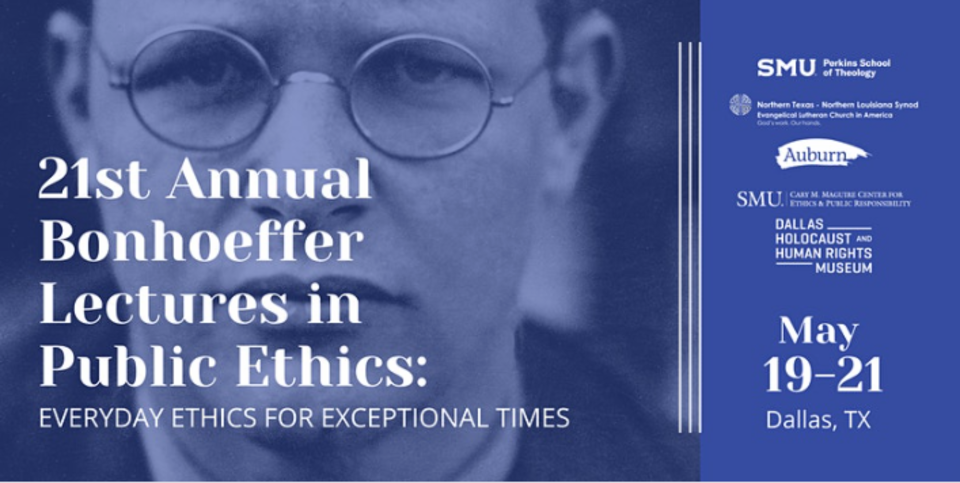 The 21st Annual Bonhoeffer Lectures in Public Ethics will be held at Perkins School of Theology, Southern Methodist University and the Dallas Holocaust and Human Rights Museum in Dallas, TX, on May 19-21, 2022. The theme of the Lectures is “Everyday Ethics for Exceptional Times.” Lecturers will draw on Bonhoeffer’s doctrine of the mandates to examine politics, family, church, and culture.
