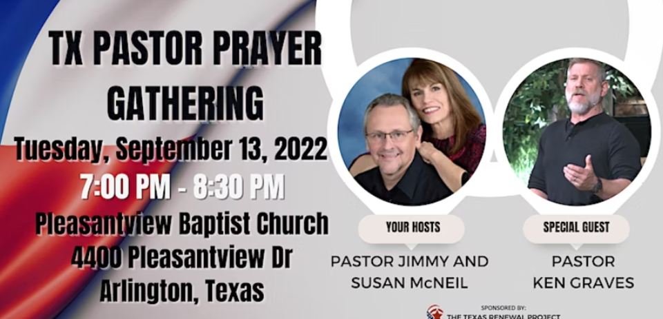 Register now for the event to be held Tuesday, September 13th, beginning at 7:00 PM, hosted by the Texas Renewal Project on the campus of Pleasantview Baptist Church (4400 Pleasantview Dr, Arlington, TX. 76017).