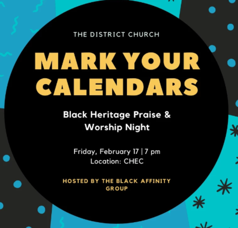 Mark your calendars for a host of spirit-led events and worship opportunities throughout the month of February in honor of Black Heritage Month. The Black Affinity Group will host a night of praise and worship on Friday, February 17th at 7 pm.