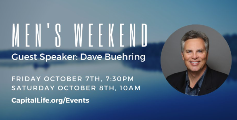 We are excited to announce our Men's Retreat Weekend at Capital Life Church! Join the men of Capital Life at the church on Friday night from 7:30PM-9:30PM and Saturday from 10AM-3PM. We have an amazing weekend of worship, encouraging messages from Dave Buehring, and of course some really great food! Sign up today and we will see you there!