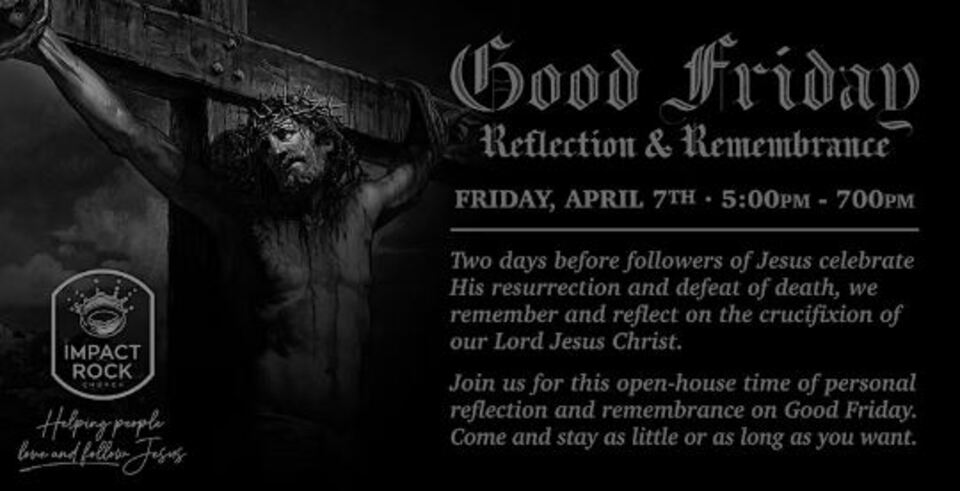 Join us for a personal time of reflection and remembrance of the crucifixion of our Lord Jesus Christ.