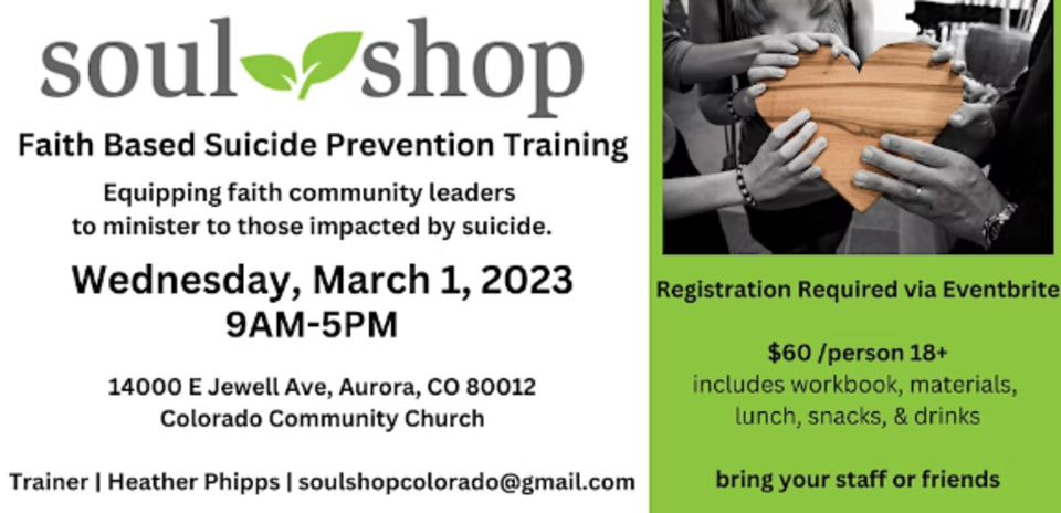 People of faith and faith leaders will learn how to minister to those impacted by suicide and create soul safe communities.