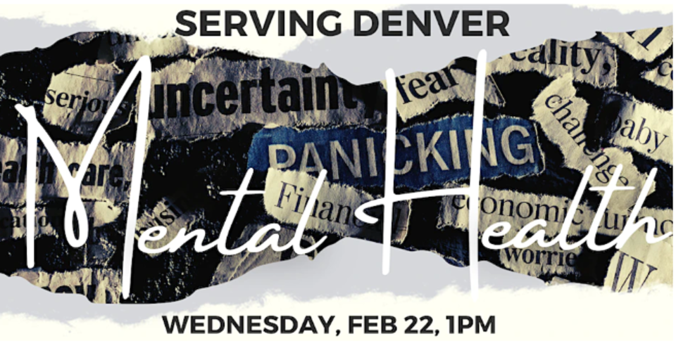 Per the Eventbrite post, the Serving Denver Mental Health event is scheduled for Wednesday, Feb. 22, from 1 p.m. to 2:30 p.m.