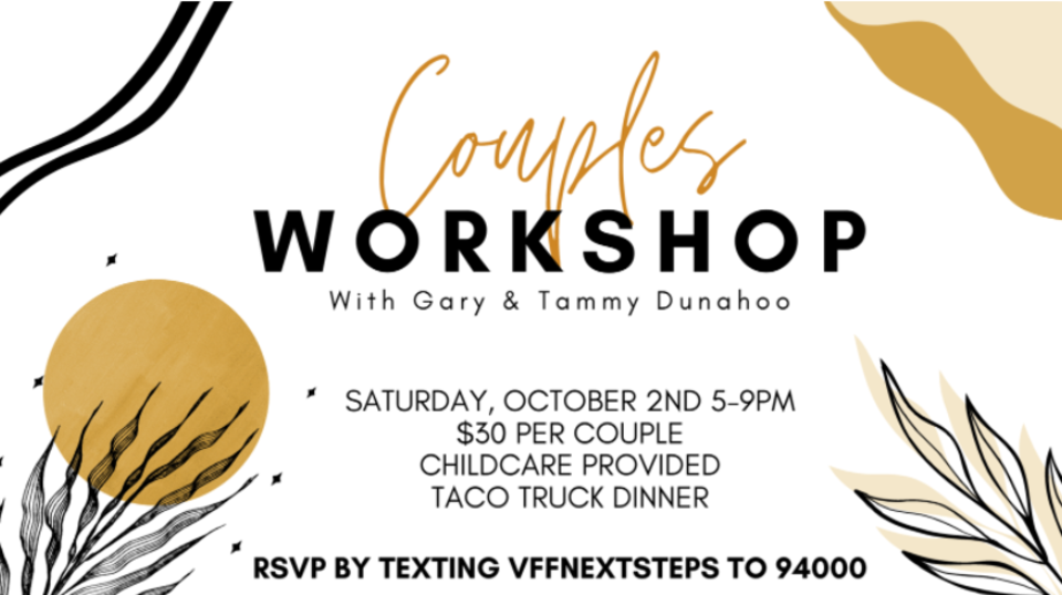 Pastors Gary & Tammy Dunahoo will be leading the workshop. Invite others couples that you know! It’s gonna be fun!