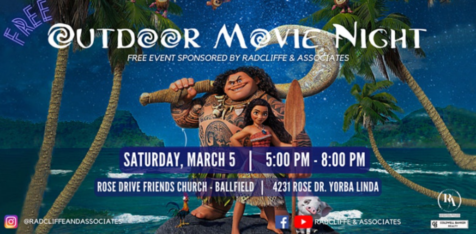 All ages are welcomed! Bring your family, friends, and loved ones to enjoy a Disney favorite, Moana, at Friends Christian Middle School - grass field area.