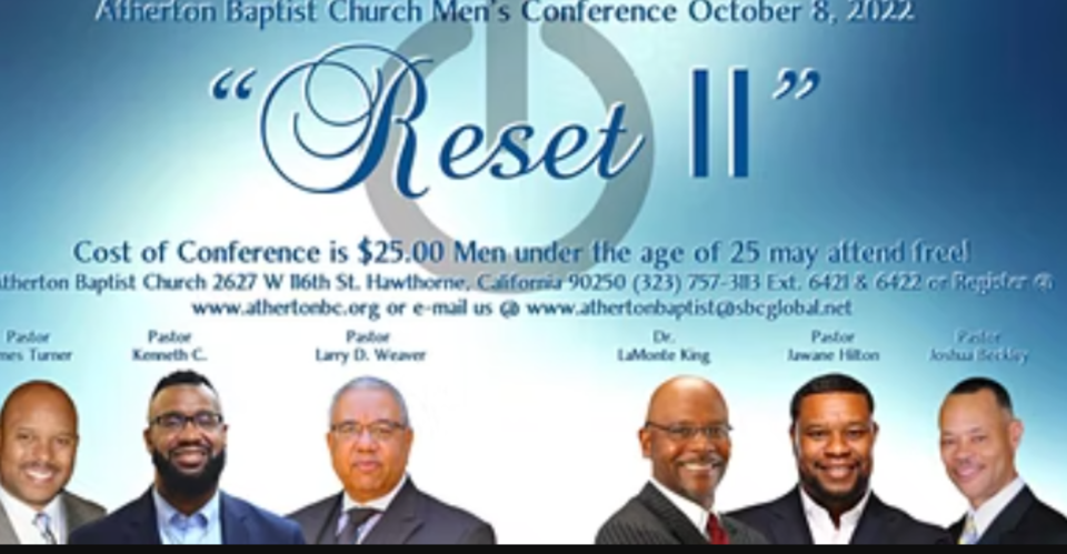 Join a virtual gathering of Kingdom Men from various venues for this year's AthertonBC Men's Conference. This year's robust lineup of pastors and teachers promises to pour a transforming message into the lives of those attending! Come join men ready for a "RESET"... Part II!