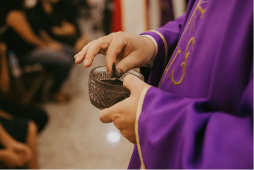 The ashes were created using the holy palm branches collected at the previous year's Palm Sunday Mass.