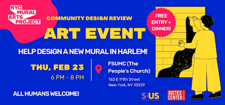 FREE ART EVENT + DINNER | Add your voice and help design a new mural about mental health going up in Harlem! ALL ARE WELCOME!!!