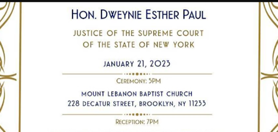 You are cordially invited to attend the Induction of Hon. Dweynie E. Paul as Justice of the Supreme Court of the State of New York
