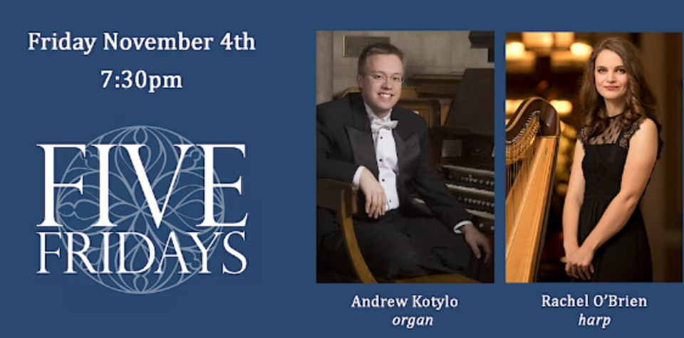 Music by Handel and Grandjany, written and arranged for harp and organ, performed by Rachel O'Brien (harp) and Andrew Kotylo (organ).