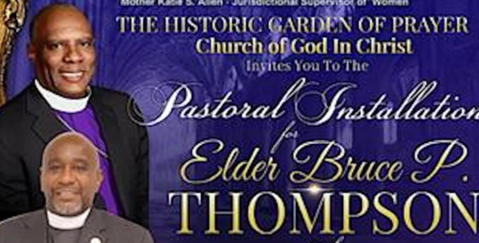 The Historic Garden of Prayer C.O.G.I.C invites you to the Pastoral Installation for Elder Bruce P. Thompson and church dedication service.