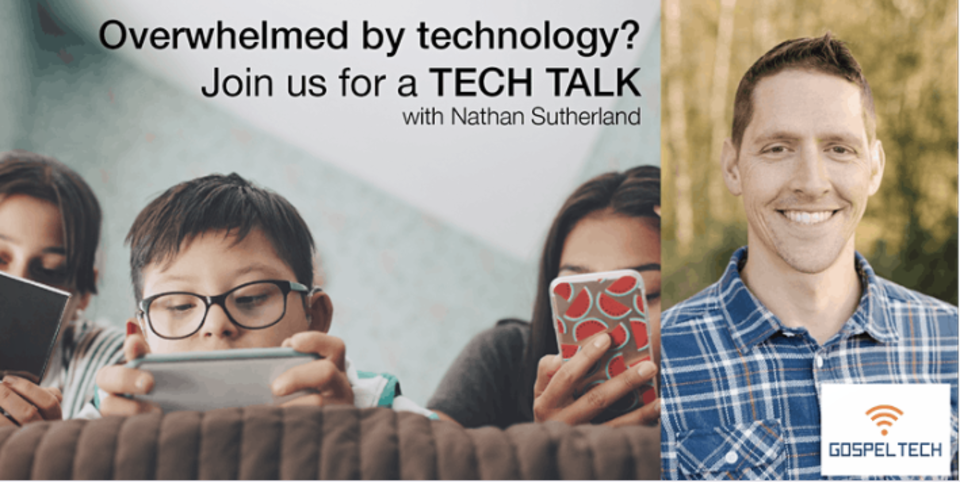 Are you concerned about technology use for yourself, your kids and your family? Do you spend too much time on your phone or video games? Join us for a presentation and conversation about our technology use with Nathan Sutherland from Flint & Iron, and Gospel Tech ministries. Nathan, along with his wife, Anna, are making it their goal to create content and resources to help families connect their tech use with the gospel.