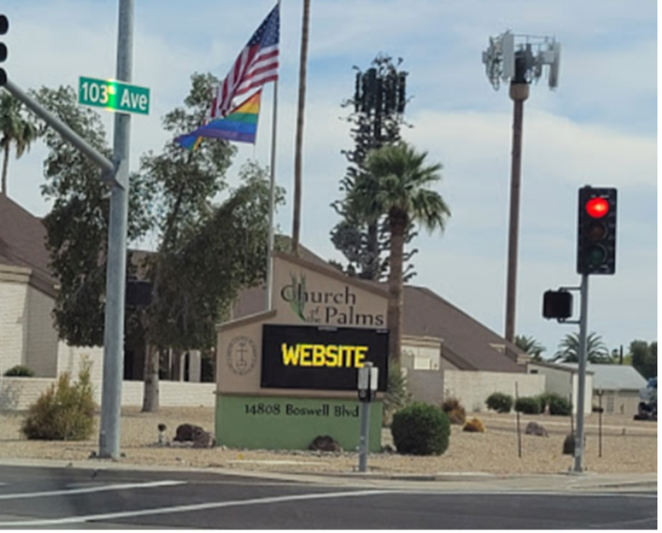 Church on the Palms is located at 14808 N Boswell Boulevard, Sun City. It is in covenant with Southwest Conference, United Church of Christ.