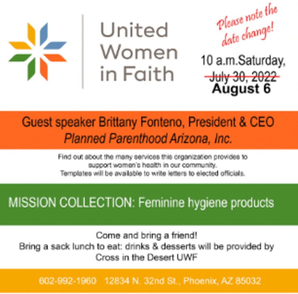 Cross in the Desert United Methodist Church in Phoenix, Arizona is set to host “United Women in Faith” to support women's health needs.