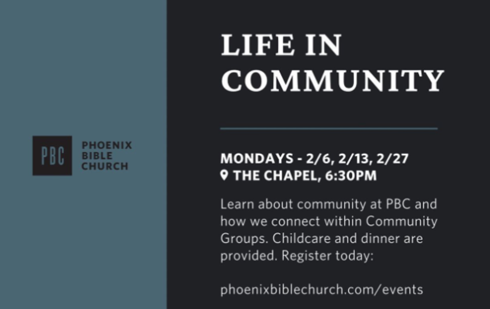 Phoenix Bible Church runs Life in Community class to learn about the community in the church every Monday from Feb. 6 to Feb. 27.