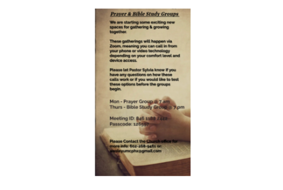 The Wesley United Methodist Church in Phoenix, Arizona announced that it held prayer and bible study groups.