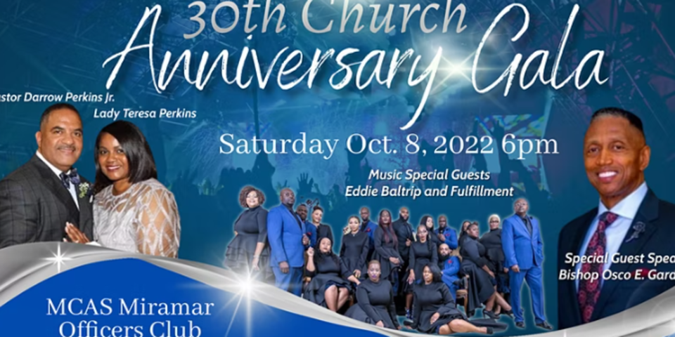 Join Mesa View Baptist Church in celebrating 30 years of ministry. This will be a momentous occasion and banquet; with dinner, musical guest, Eddie Baltrip & Fulfillment; Guest Minister Bishop Osco E. Gardin, Jr, and other special events throughout the entire evening. You do not want to miss it! Come share in the celebration and be a part of Mesa View Baptist Church history!