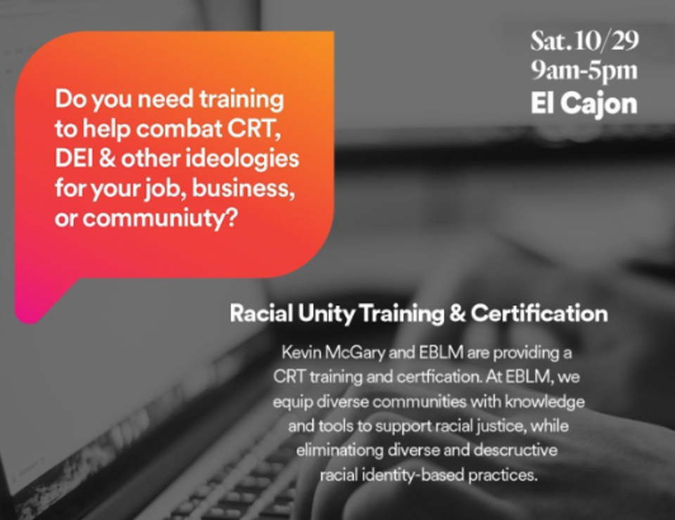 The church’s Facebook page announced that Kevin McGary and Every Black Life Matters (EBLM) will provide the training. They added they are offering critical race theory (CRT) training and certification.