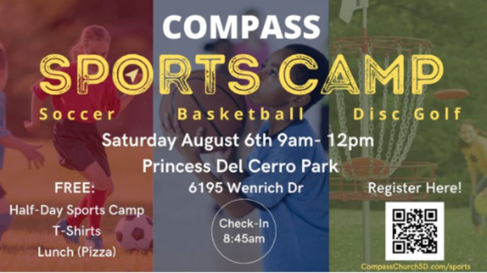 Compass Church invites children aged 3-12 to join their Half-Day Sports Camp for free on Aug. 6, Saturday, at the Princess Del Cerro Neighborhood Park.