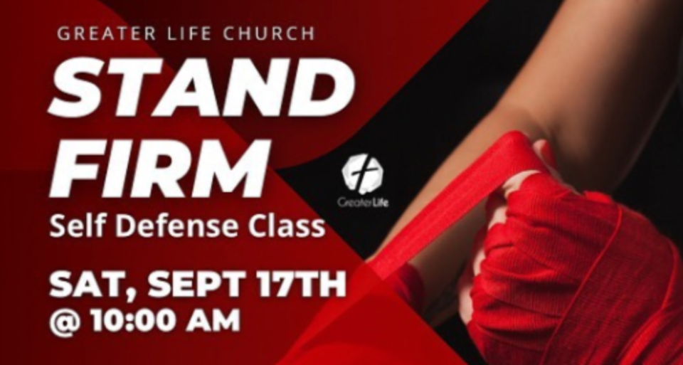 Greater Life Church encouraged members to attend the "Self Defense Class: Stand Firm" on Saturday, Sept. 17 at 10 a.m.