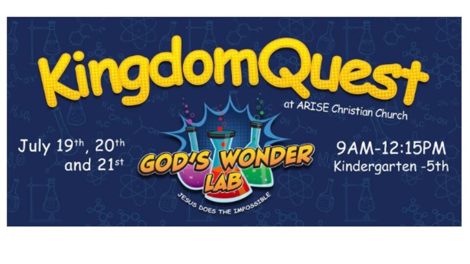 Arise Christian Church announced that the Kingdom Quest Vacation Bible School Registration 2022: God’s Wonder Lab will start June 1 and end at the end of the month.