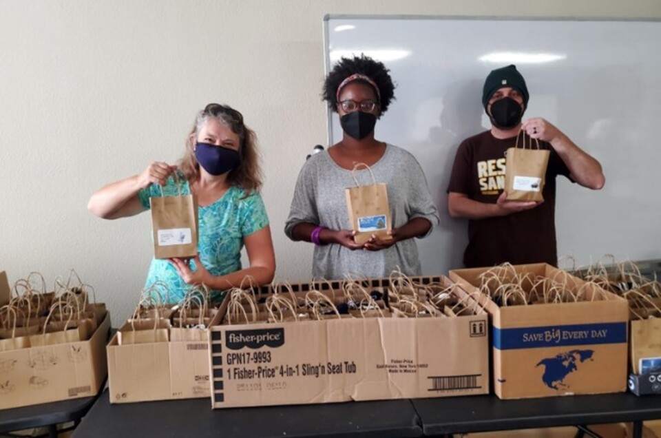 The Youth Group at Mission Hills United Church of Christ created the bags stuffed with chocolate, scented candles, and socks.