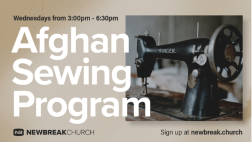 Newbreak Church invites members to help their new neighbors by asking Afghan women to come and sew an outfit every Wednesday from 3 p.m. to 6:30 p.m.