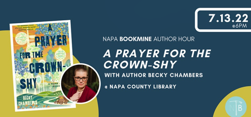 Napa Bookmine welcomes author Becky Chambers on Wednesday, July 13th at 6:00PM at Napa County Library to discuss the second book in her Monk & Robot series, A Prayer for the Crown Shy. This event is presented in partnership with LGBTQ Connection Napa.