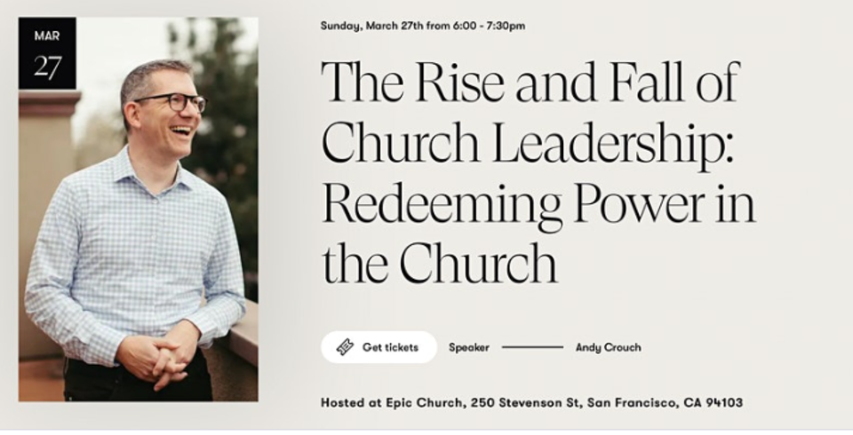 Join us as we learn from Andy Crouch, the former executive editor of Christianity Today and the author of numerous best-selling books. Andy will share a biblical framework for our use of power. We will also address practical questions: How can we create leadership structures that keep leaders accountable with respect to their power while also protecting the vulnerable? How can church planters, pastors, and leadership boards structure their churches in healthy ways, creating space for power to be leveraged and redeemed for good? This conversation is crucial for pastors, church planters, leadership teams, and church board members. All are welcome and warmly invited!