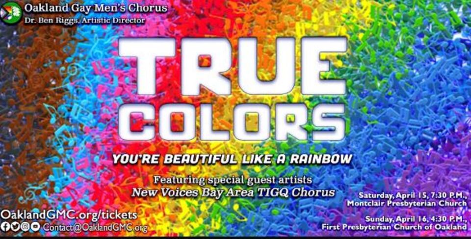 Please join Oakland Gay Men’s Chorus for our uplifting spring concert True Colors, featuring special guest New Voices Bay Area TIGQ Chorus.