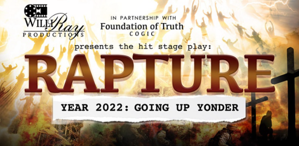 This is one of the best stages plays you will see this year. This is a, One Night Only, soul-stirring, Biblical prophesied catastrophic event that the world must face during the second coming of Jesus Christ. Are you Rapture Ready? Will you be left behind? See a stage play that will change your life and mind about what you believe is true. One Night Only! Get your tickets today.