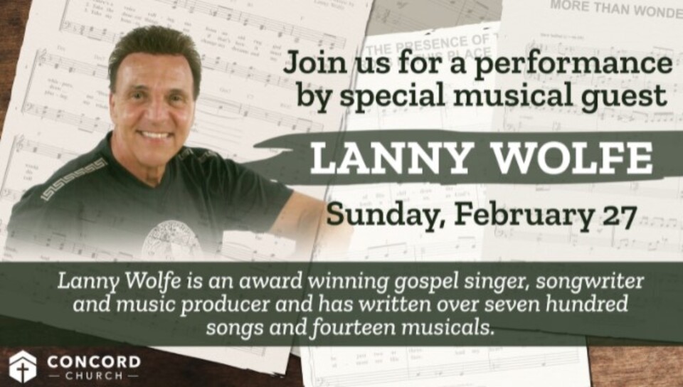 As stated on the official website of the church, everyone is invited to come and join the church family as they have Lanny Wolfe as the church’s guest artist and conductor of the Concord Community Choir in their special worship service on Sunday, Feb. 27.