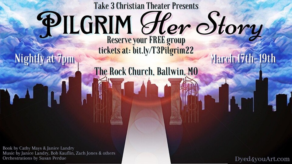 According to the official website of Event Brite, everyone is invited to join Take 3 Christian Theater for their annual spring performance of “Pilgrim, Her Story”, a modern musical interpretation of John Bunyan's famous masterpiece, “Pilgrim's Progress”.